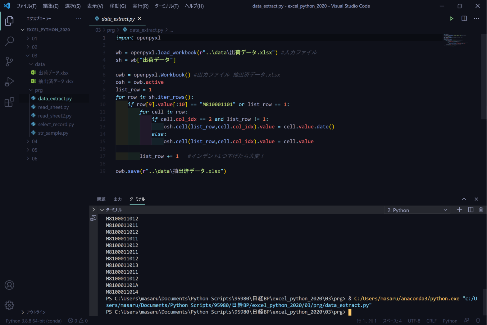 PythonのopenpyxlというライブラリでExcelブックを編集する本を読んでいます。Excelを使うのはもっぱら職場で、Pythonが使える職場は少ないので、あまり関心は高くありません。「流行りモノは押さえてお… 続きを読む PythonでExcelデータ処理