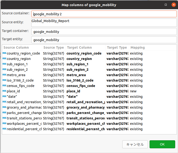 とは言え、Google Mobilityデータも短期間のうちにplace_idというカラムが増えており、オープンデータの扱いのやっかいさを実感します。さらにCSVの中身が壊れているとインポートの段階で苦しみます……💦