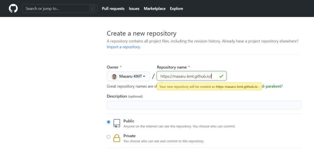 GitHubでGitHub Pages用のレポジトリを作成する