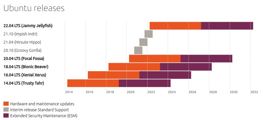 Ubuntu 22.04 LTSは2032年3月までのサポートなのでサーバー運用でも安心