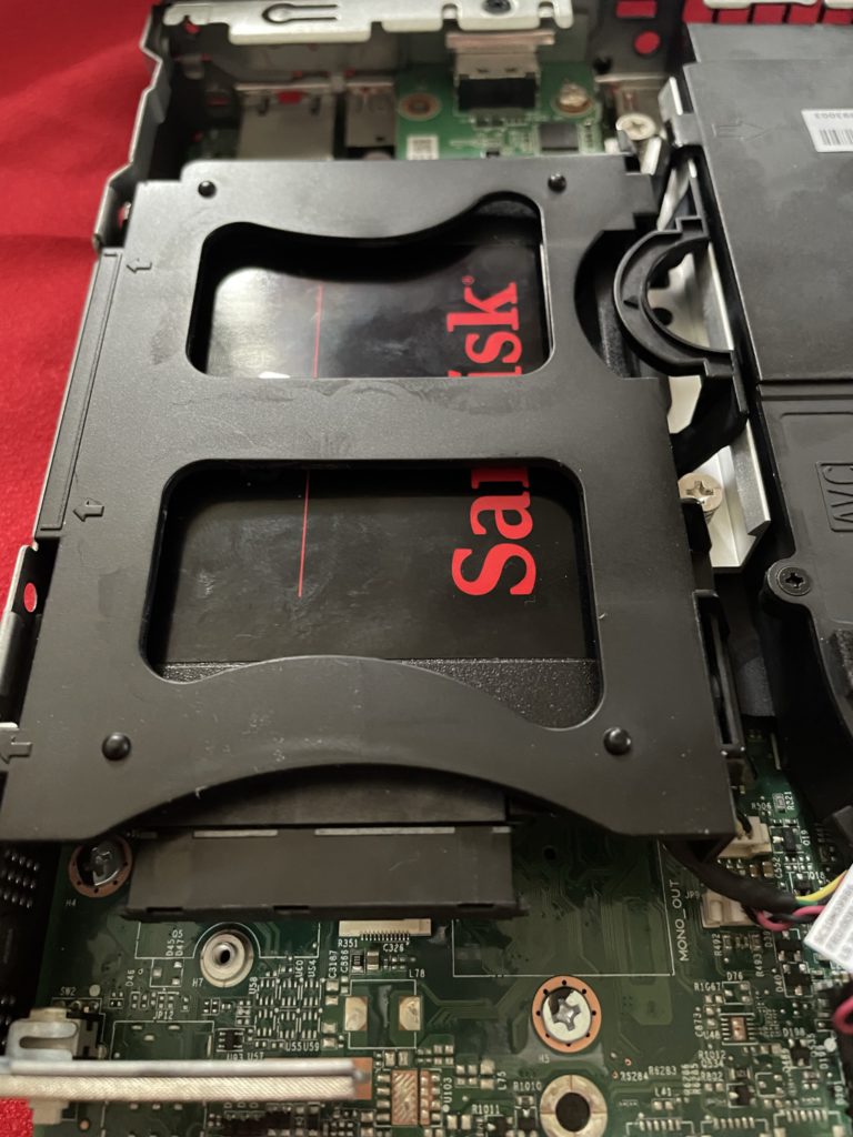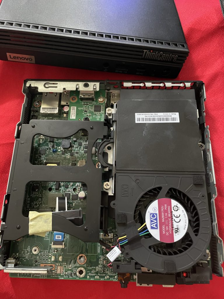 Lenovo ThinkCentre M75q Gen2の2.5インチ SSDを装着したところ