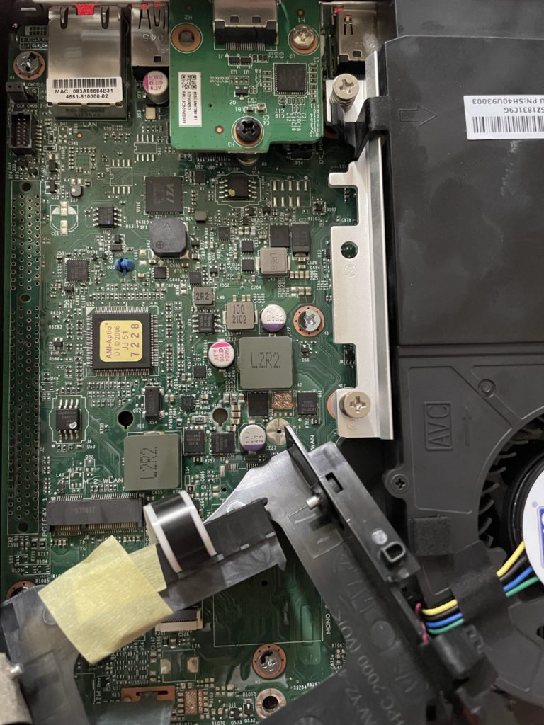 Lenovo ThinkCentre M75q Gen2の2.5インチマウンターを外したところ