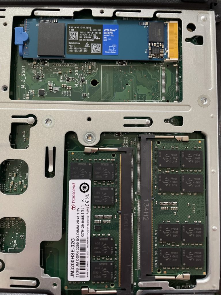 なお、今回はメモリは『Transcend JM3200HSE-32G』2枚、SSDは『Western Digital WD Blue SN570 1TB』を選びました。