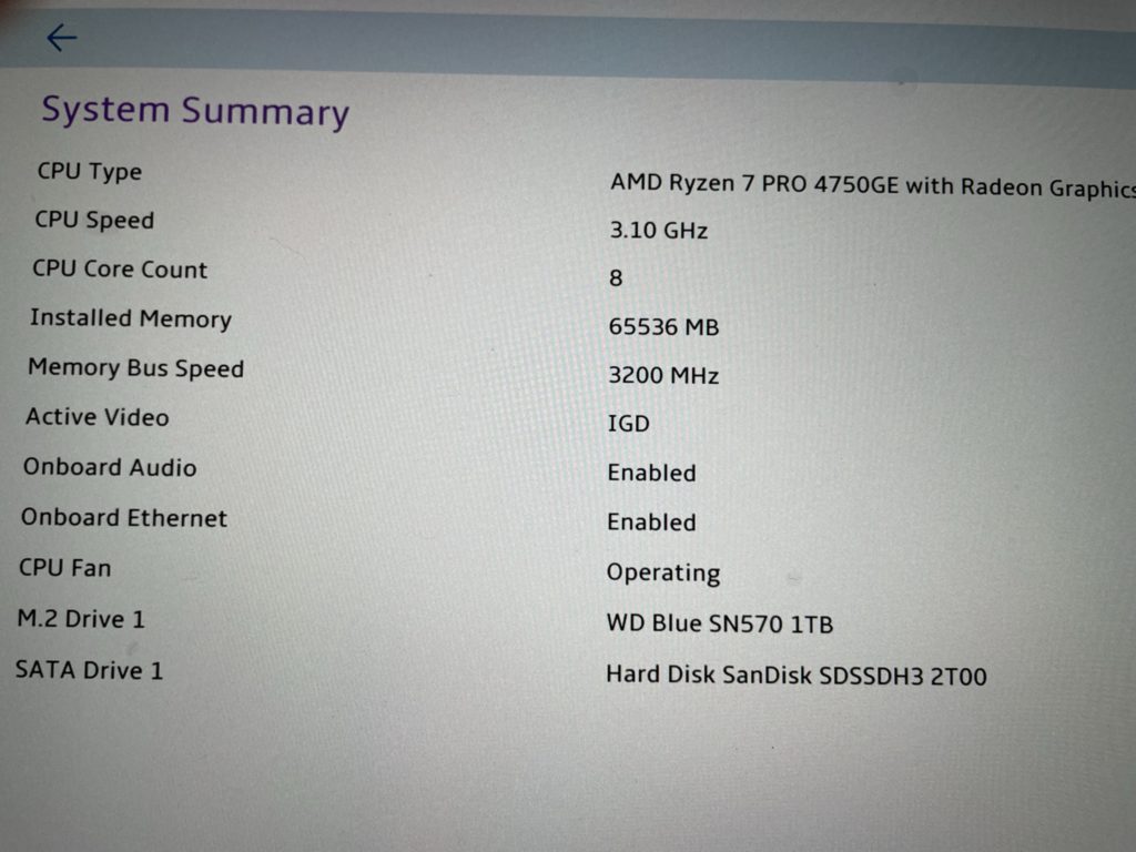 システム概要の画面で、メモリを64GB認識して3200MHzで動いていることも確認します。これで安心🙌