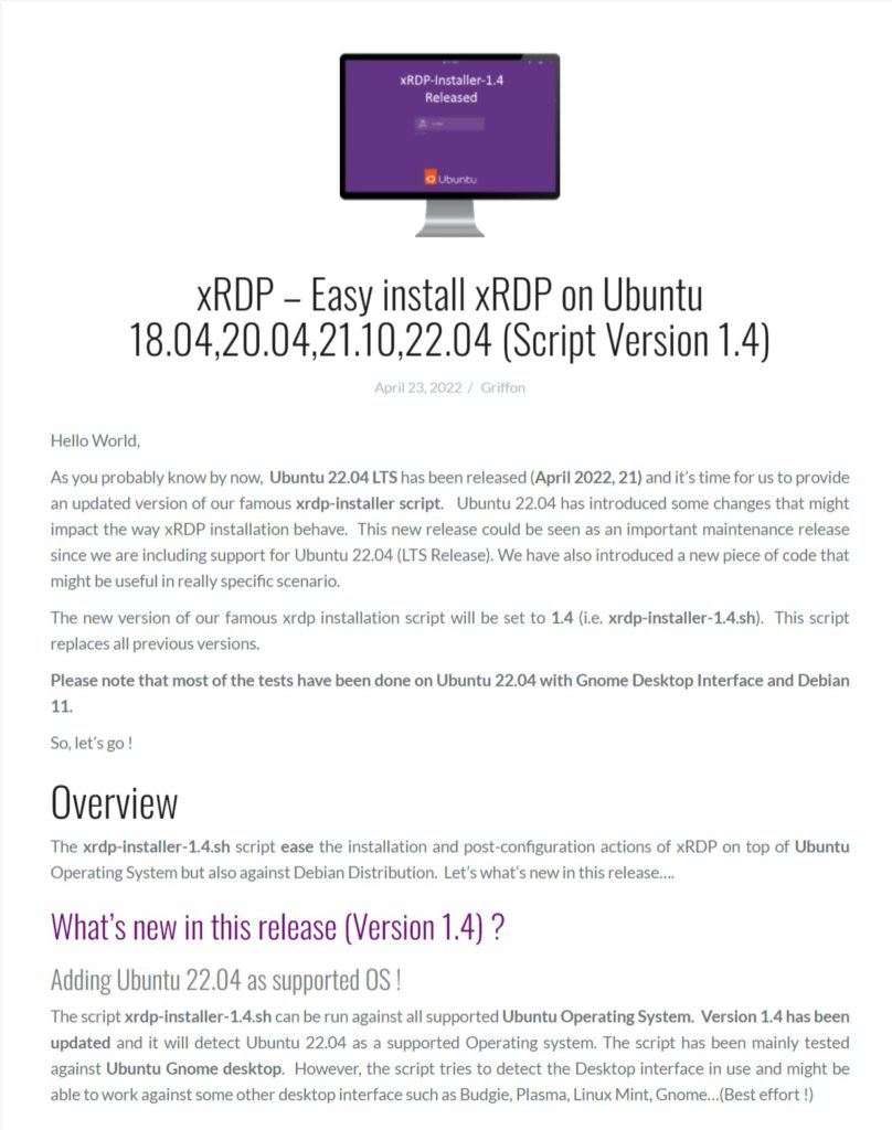 何が素晴らしいかというと「Ubuntu 22.04 LTSに糞なgnome-remote-desktopが標準搭載されてもxrdpへのニーズが無くならないことを百も承知で、リリース直後に速攻で対応した」という点に尽きます。