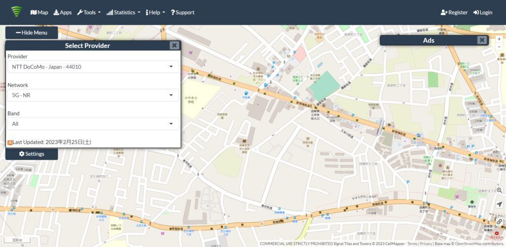 田無駅周辺には新青梅街道と青梅街道沿いにドコモの5G基地局が配備されており、街道から近ければ5Gエリアとなっている