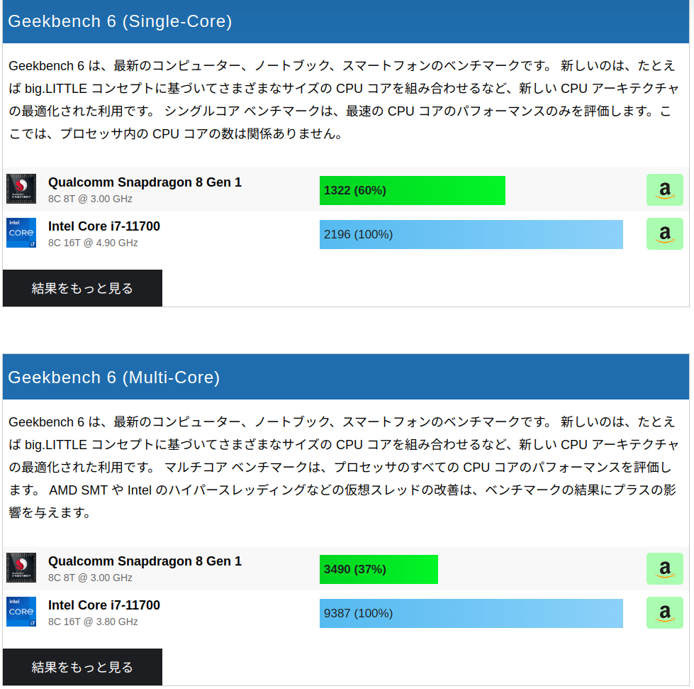 実際に2022年3月20日時点でHPの弁当箱PCでIntelとAMDの同価格帯商品の性能を比べてみると、